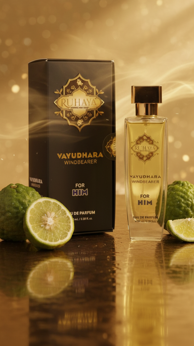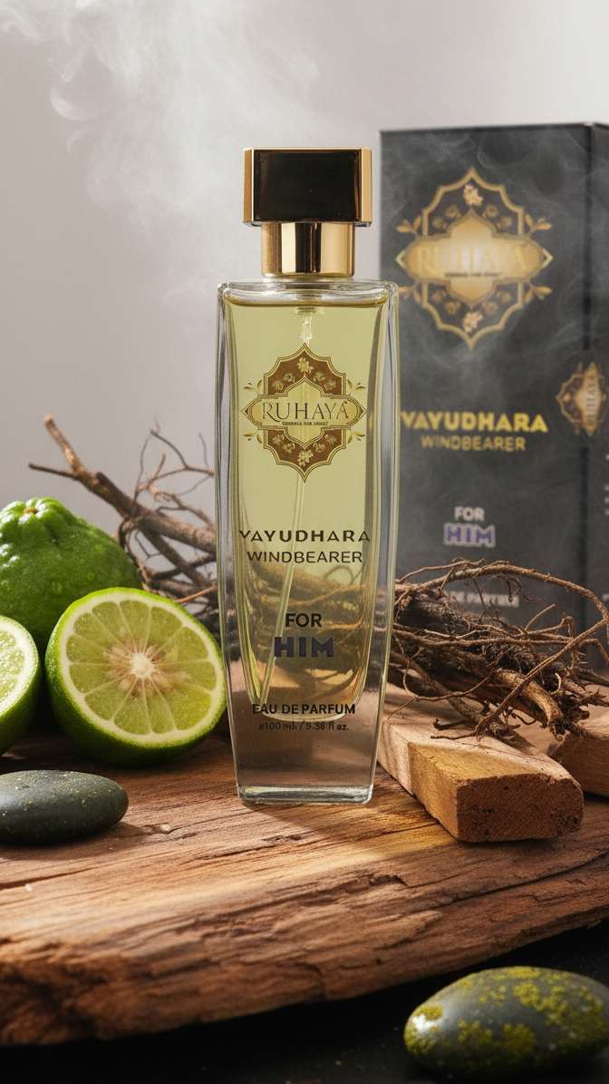 “A Storm of Strength — Fresh Citrus Winds Blended with Vetiver and Cedarwood Roots.”